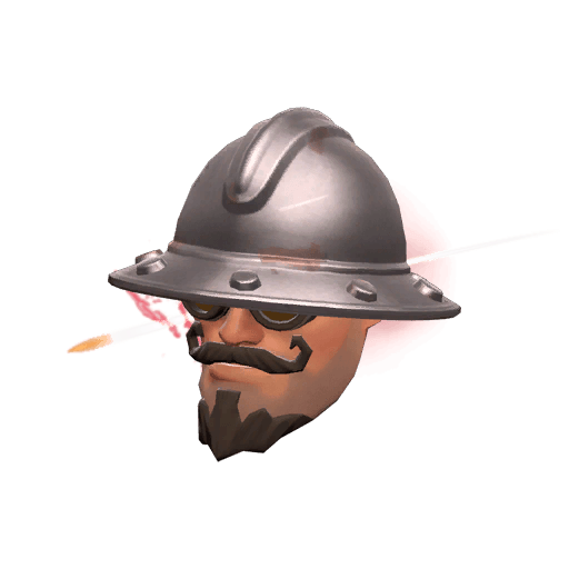 This cosmetic features a rugged, metallic helmet with a pronounced ridge running along the top and a series of bolts encircling the brim. The design gives off a sturdy, industrial look, fitting for the Engineer.