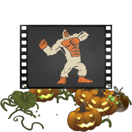 This taunt features a film strip with an illustration of a yeti in a dynamic pose, emphasizing its powerful stance. The image is accented by a cluster of carved, glowing pumpkins and green vines, giving it a festive, Halloween-inspired look.
